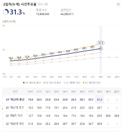 22대 총선 사전투표율