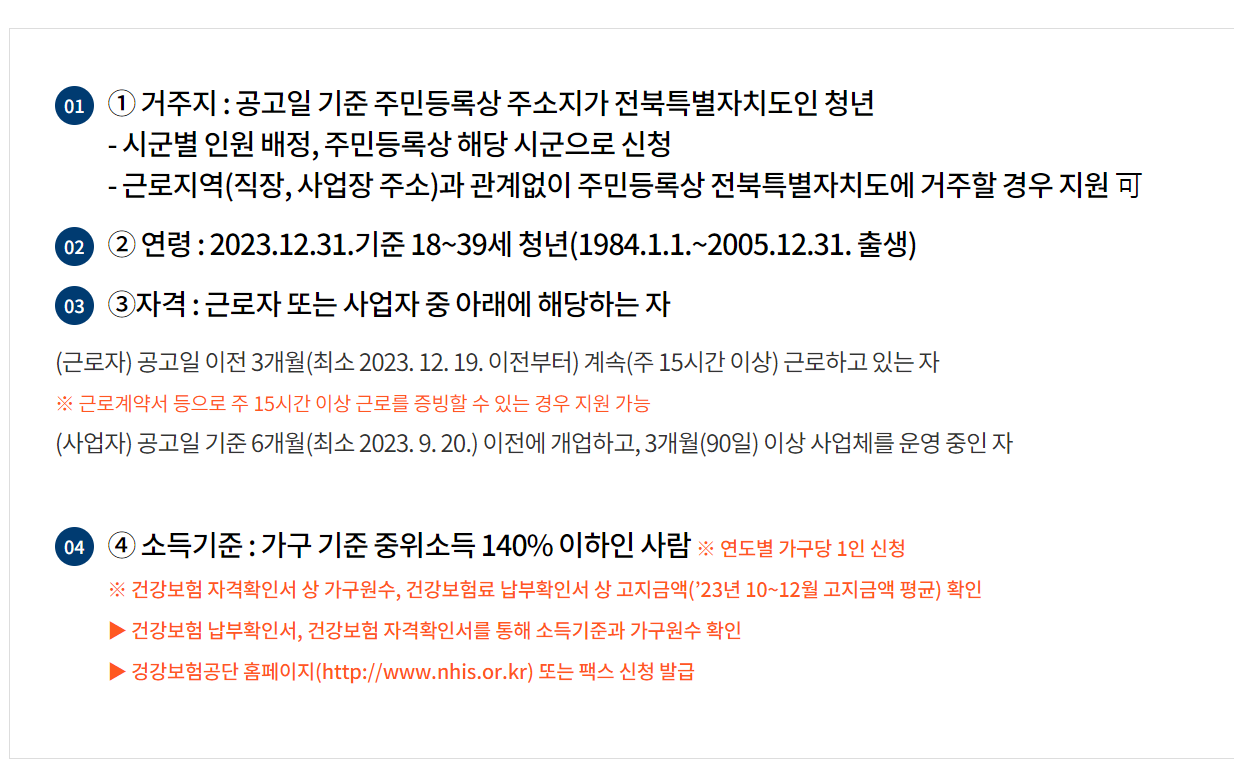 오늘은 전라도 청년이고 근로소득이 있다면 지원금 최대 240만 원까지 받으실 수 있는 2024 전북청년 두 배적금 알려드릴 테니 신청기간 놓치지 마세요~~